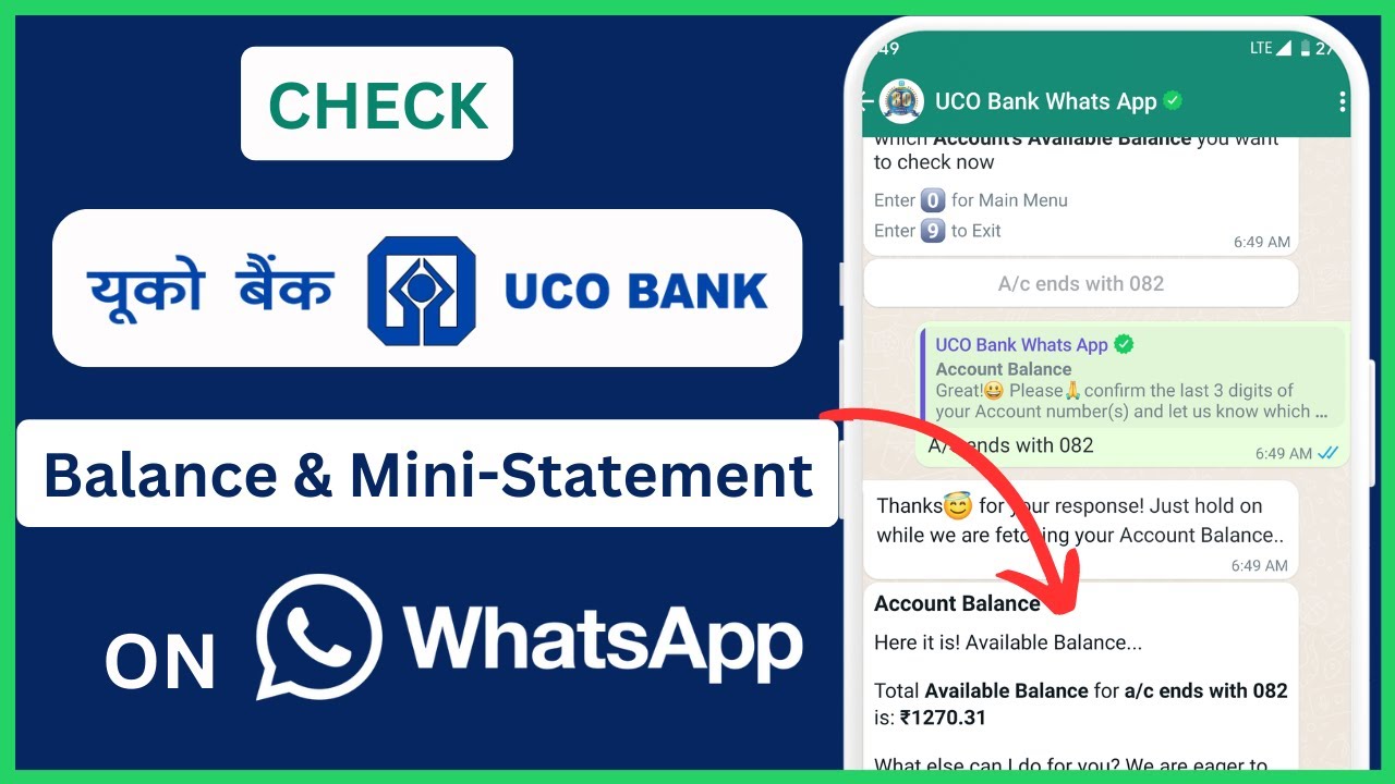Check UCO Bank Account Balance & Mini Statement on WhatsApp UCO Bank WhatsApp Banking YouTube