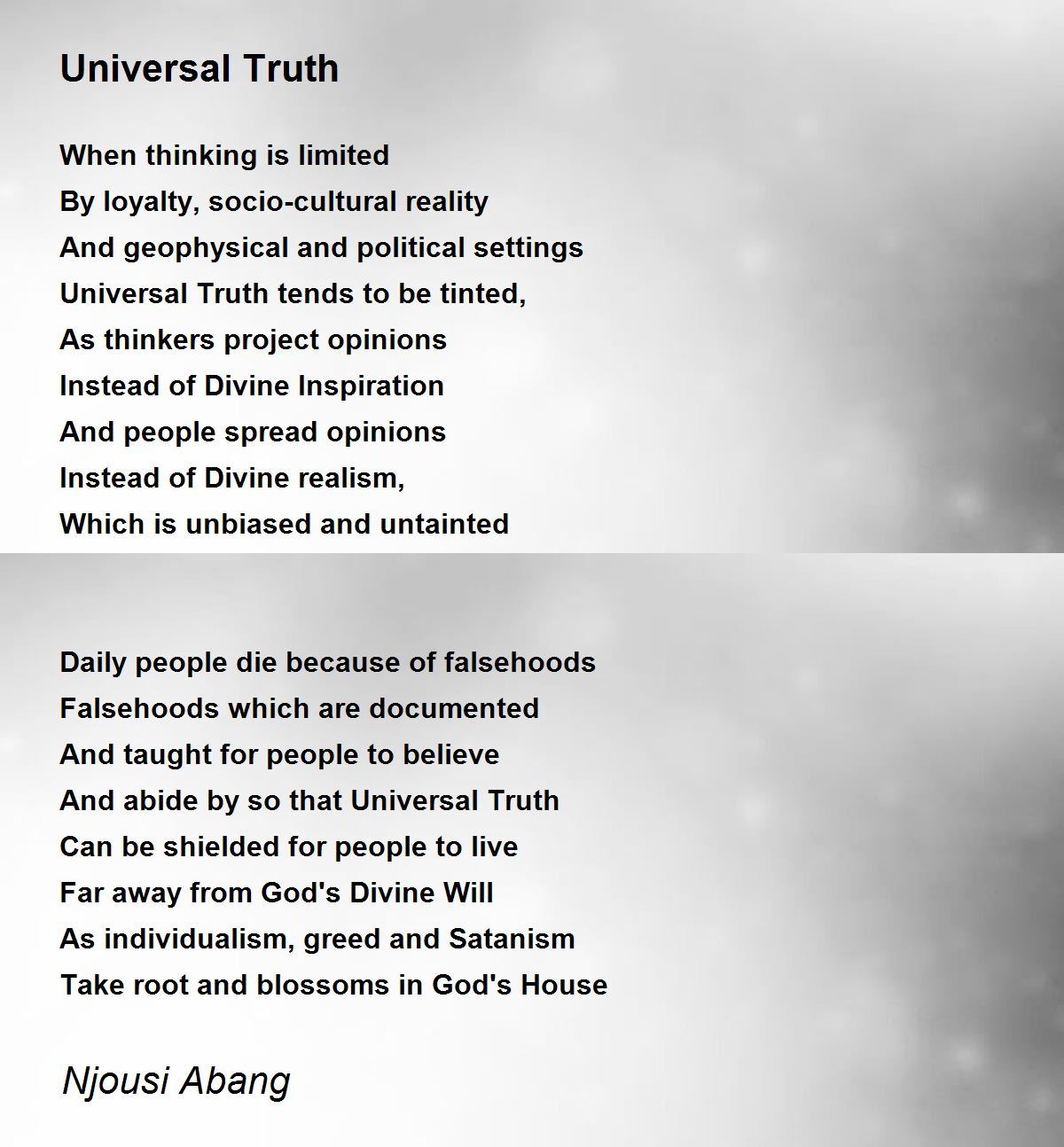 Universal Truth Universal Truth Poem by Njousi Abang