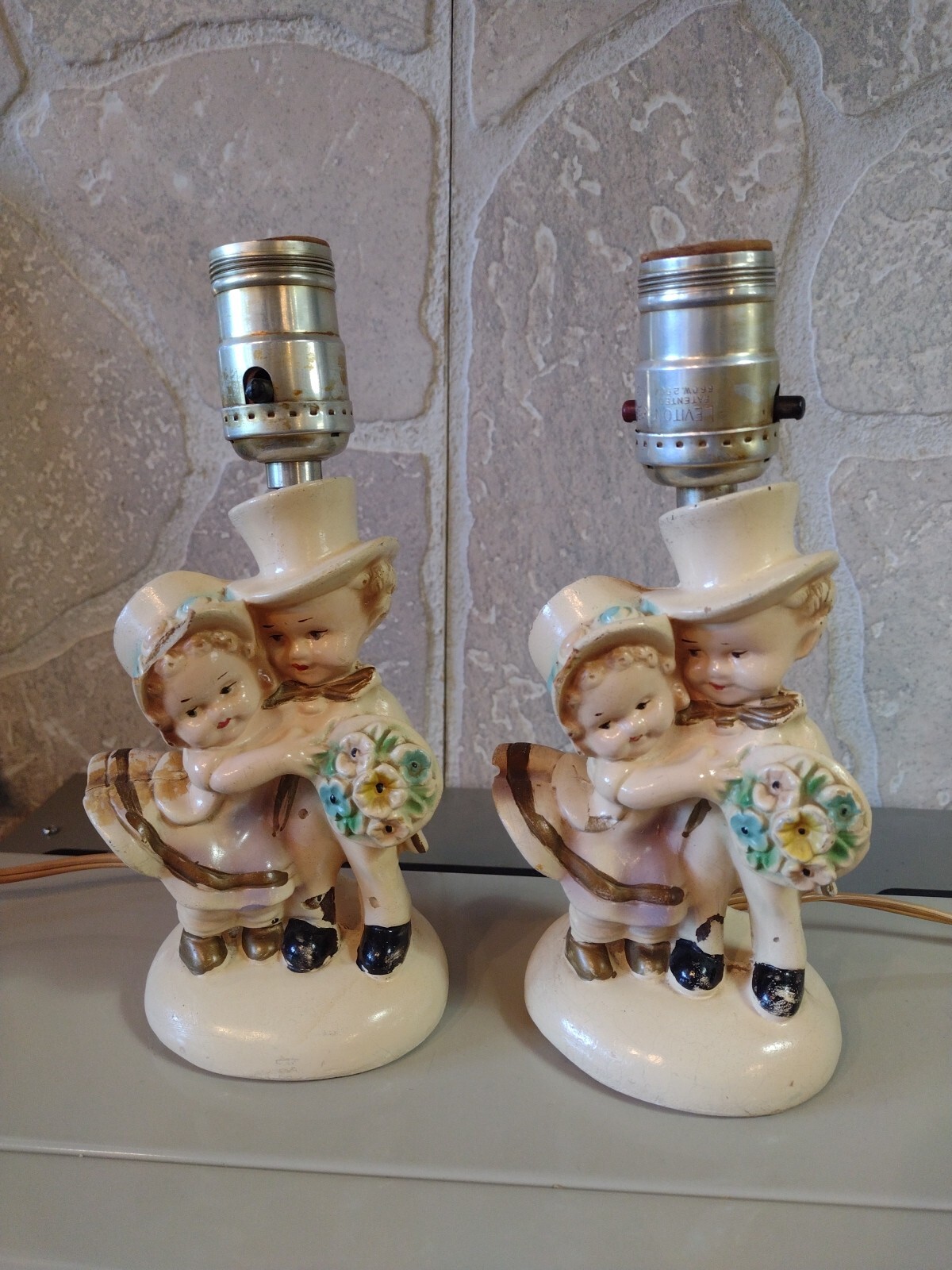 Pair 19301940s Chalkware Vintage Table Lamps Bride Groom Wedding Boy Girl eBay