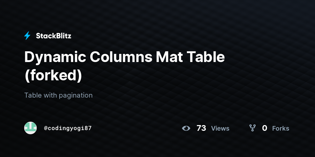 Dynamic Columns Mat Table (forked) StackBlitz