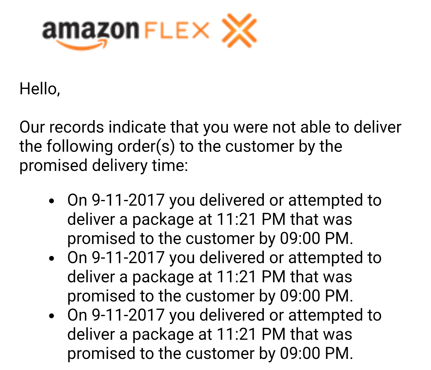 Late delivery r/AmazonFlexDrivers