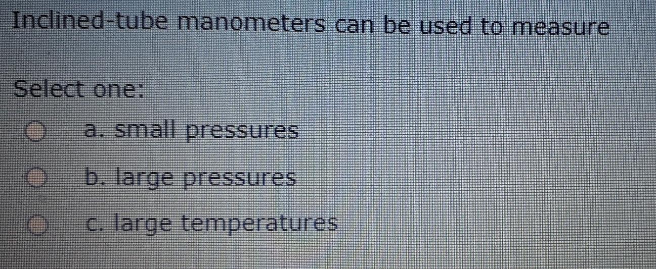 Solved Inclinedtube manometers can be used to measure What Can A Manometer Be Used For Specifically, it measures the pressure difference between two points in a. See different types of manometers,. learn about manometer, a device for measuring pressure in the lower ranges, and its types, applications, and accuracy. A manometer is a device to measure pressure. a manometer is a device used in engineering to measure pressure. definition, working, and types. What Can A Manometer Be Used For.