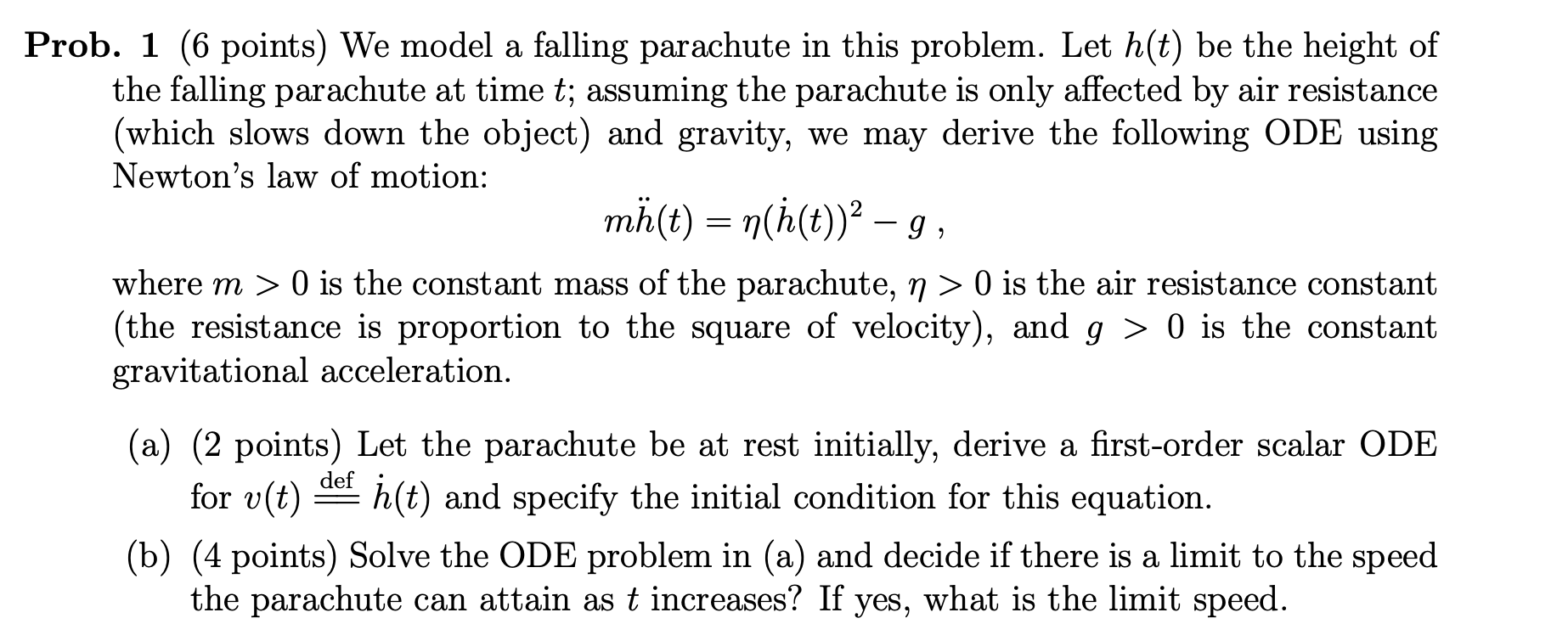 Solved rob. 1 (6 points) We model a falling parachute in