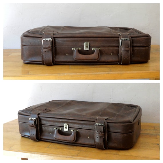 Leather Suitcase, Train Case, Leather Valise, Brown L… Gem