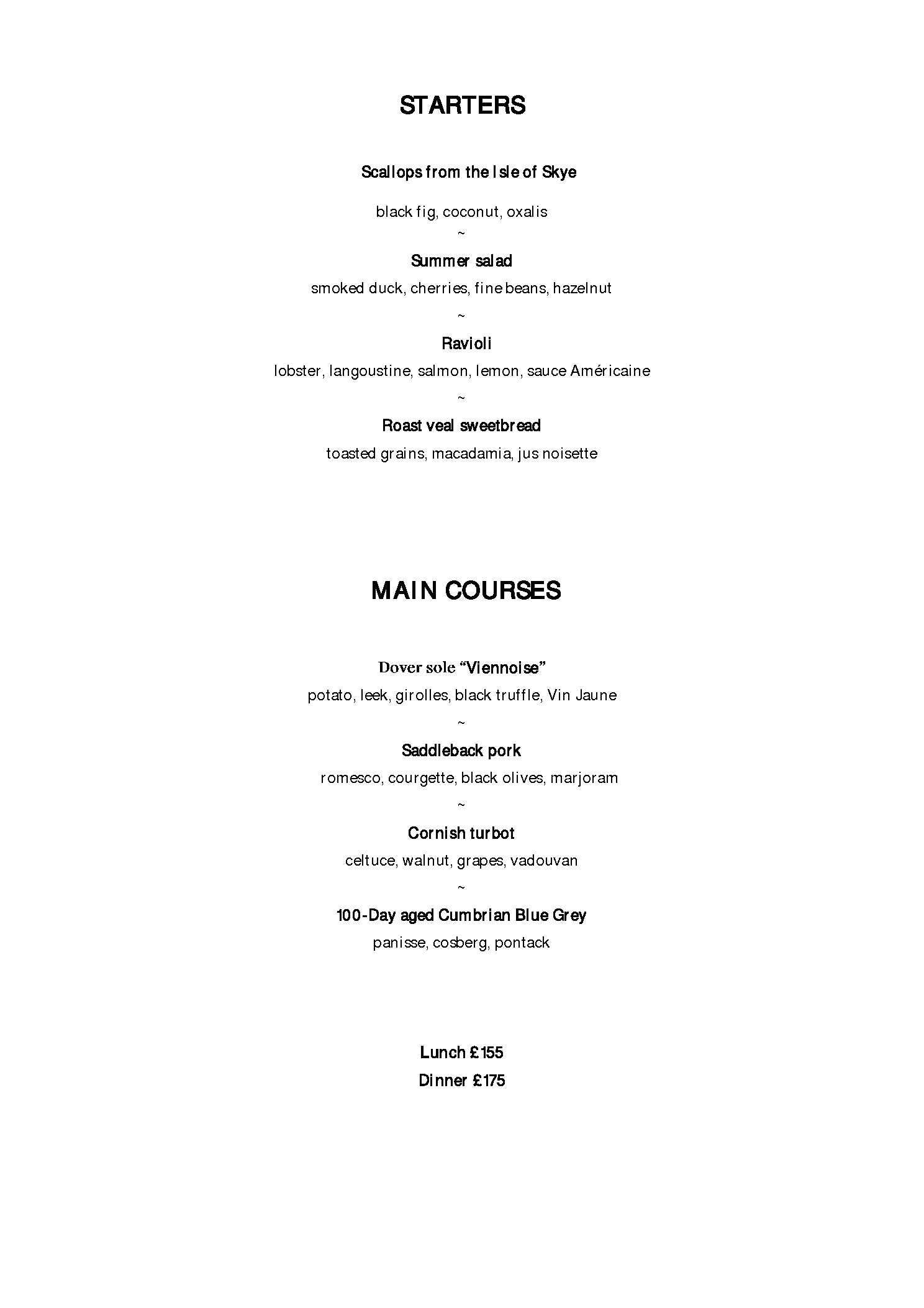 Menus Restaurant Gordon Ramsay