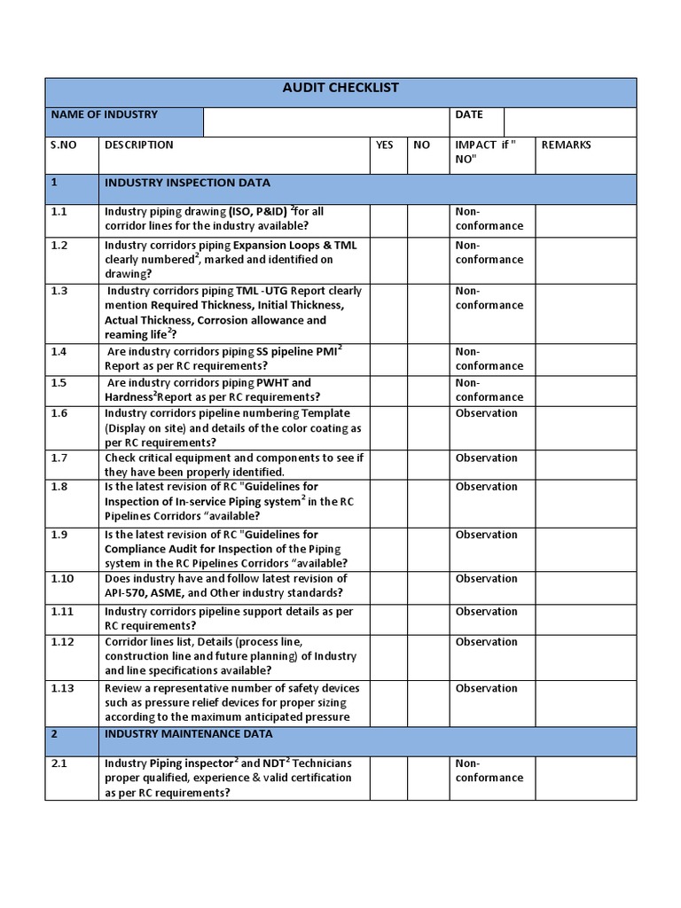 Audit Checklist Pipeline Transport Audit