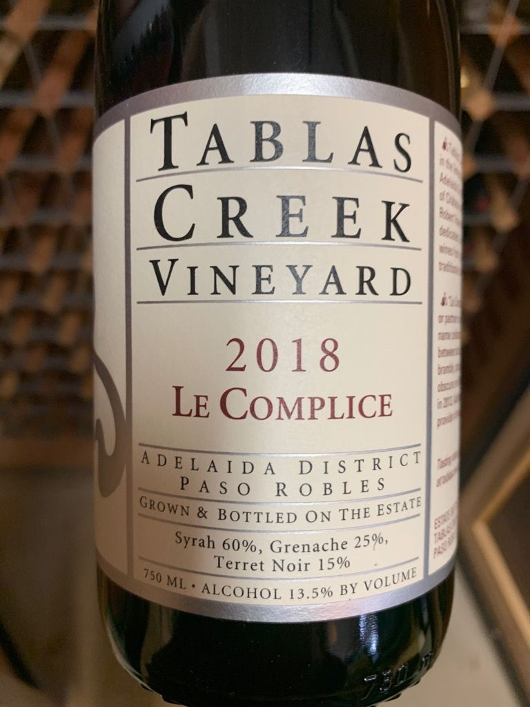 Our Wines Tablas Creek Tablas Creek Le Complice 2017 Critics have scored this wine 92 points. The rhône valley is one of france's key wine regions, and is divided neatly by a gap of about 25 miles. A blend of 67% syrah, 21% grenache and 12% terret noir, the medium ruby colored 2017 le complice has a spicy, perfumed nose of orange. Chelsea will then dive deep into tasting. Tablas Creek Le Complice 2017.