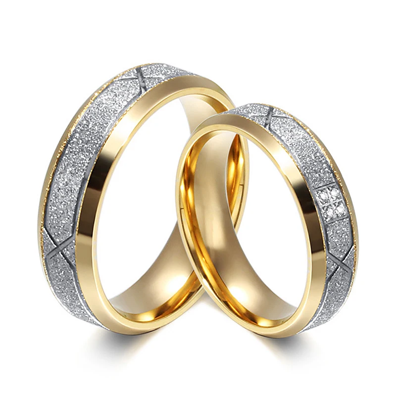 Shiny Wedding Rings for Women Men Frosted Matte Stainless Steel Ring CZ