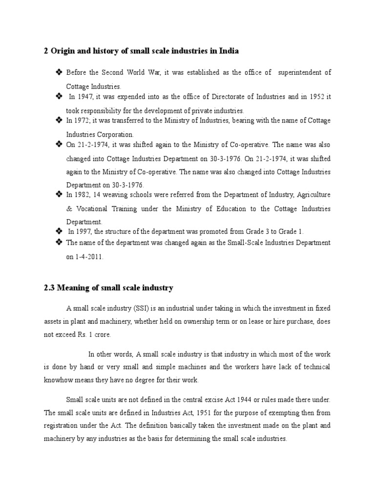 2 Origin and History of Small Scale Industries PDF Capital (Economics) Employment