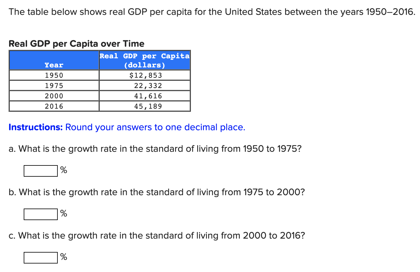 Solved The table below shows real GDP per capita for the