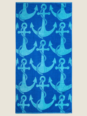 Navy Anchors Beach Towel Home at ASDA