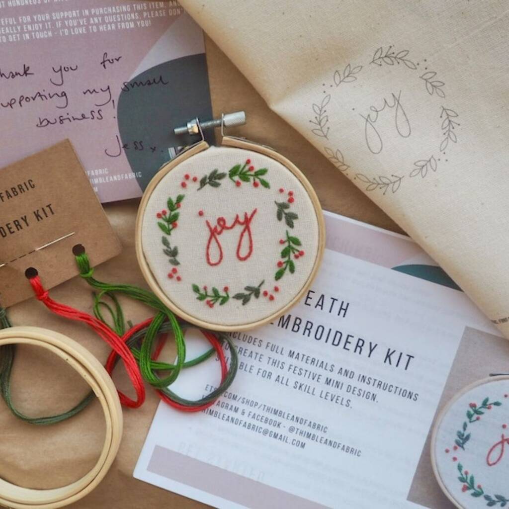 Mini Christmas Embroidery Kit Joy Wreath By Thimble and Fabric Mini Christmas Embroidery Kits Christmas embroidery kits and patterns give you motifs, colors and stitch combinations celebrating the season. Check out our mini embroidery kit christmas selection for the very best in unique or custom, handmade pieces from our kits shops. Get your home ready for christmas this year with our range of embroidery kits. From our stylish wreath to our trendy wine charms,. Mini Christmas Embroidery Kits.