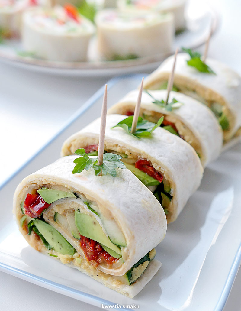 Roladki z tortilli z grillowaną cukinią, awokado i hummusem Kwestia Smaku