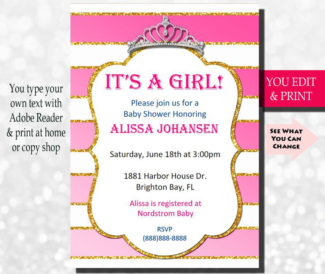 It's A Girl Invitation, Baby Shower Invitation, Pink Gold Glitter Baby Etsy Girl Baby Shower Invitations Full set of lovely baby shower girl invitations for your perfect shower. 1m+ visitors in the past month Search our selection of customizable and printable baby shower invitations for the best templates you can personalize in a few simple clicks. Download, print or send online with rsvp! Easily customize 'watercolor stroller' baby shower invitation design with your text and photos.. Etsy Girl Baby Shower Invitations.