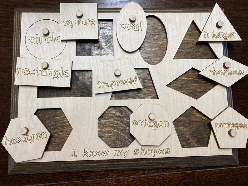 Learn Your Shapes Wooden Laser Cut Heavy Duty Puzzle 10 Shapes Etsy