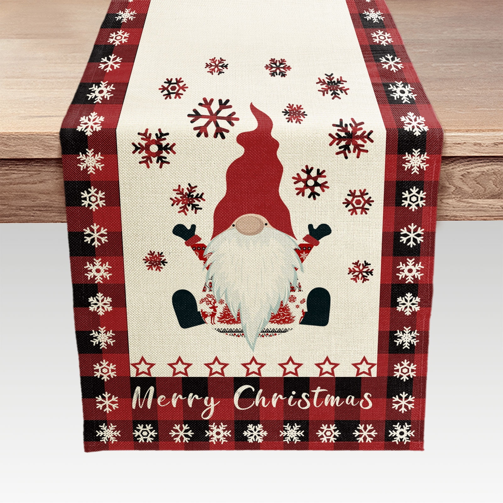 Red Christmas Table Runner, Xmas Gnome Merry Christmas for Kitchen