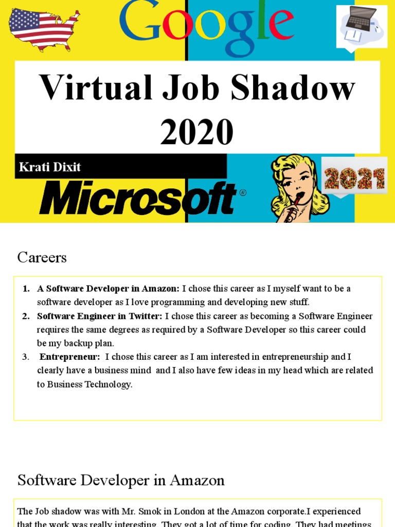 Virtual Job Shadow 2020 PDF Programmer Business What Is Virtual Job Shadow Along with potentially acquiring new skills, it’s. augment your career planning needs with the most powerful career exploration platform available for middle schools, high schools, post. Virtual job shadowing is an online, interactive experience that allows. what is virtual job shadowing? From there, you can follow what they do and ask them any questions while you’re at home.. What Is Virtual Job Shadow.