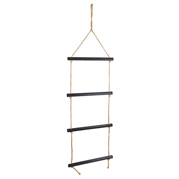 4Rung Hanging Towel Ladder, Blanket Drying Rack with Rope for Bathroom