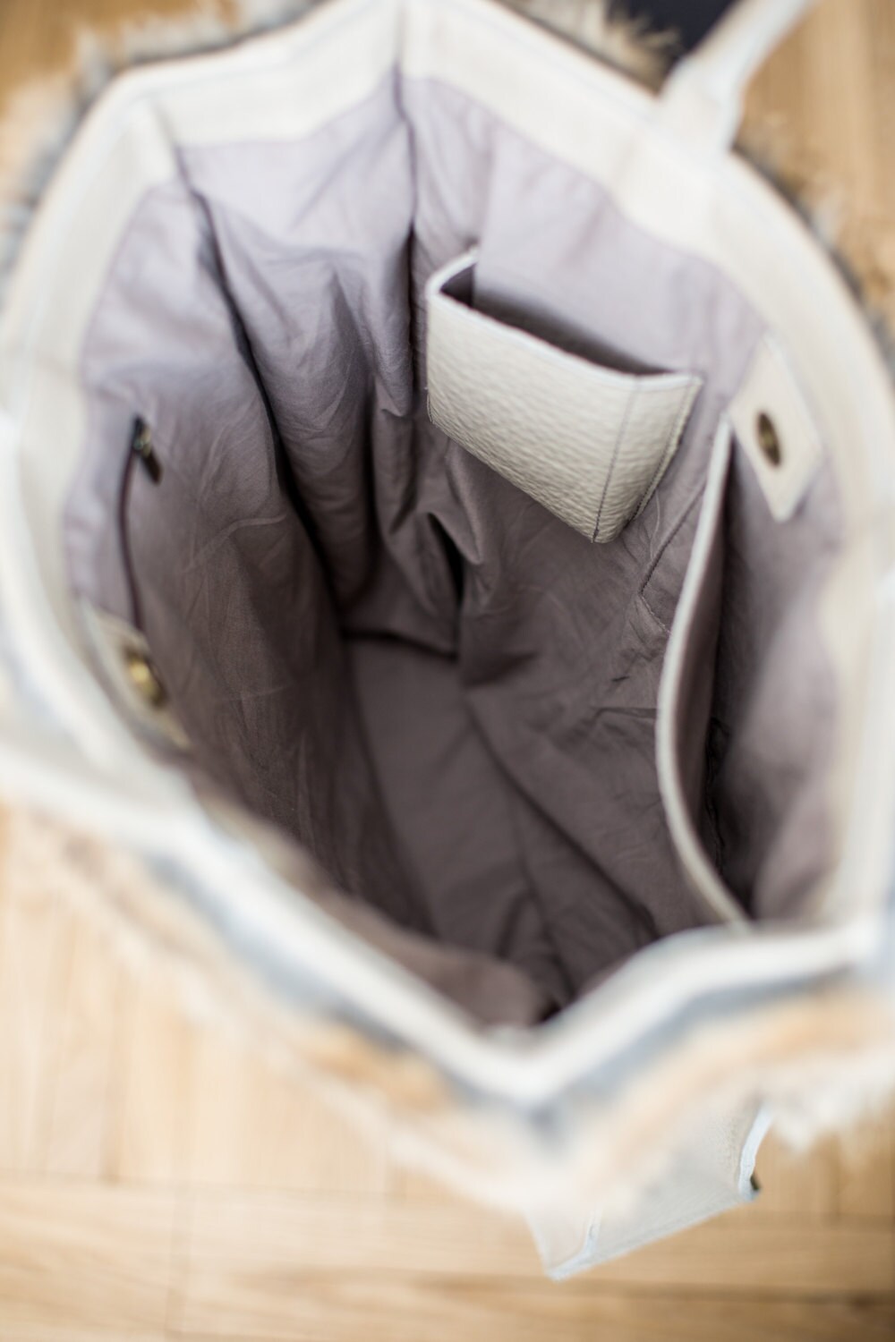 SALE / Large Leather Tote Bag with Rabbit Fur / Leather Tote Etsy