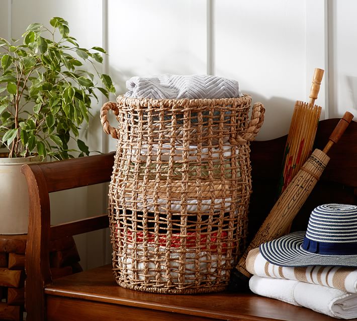 Open Weave Tall Storage Basket Pottery Barn
