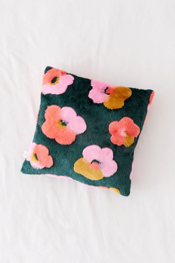 Penny Floral Faux Fur Throw Cushion Urban Outfitters UK