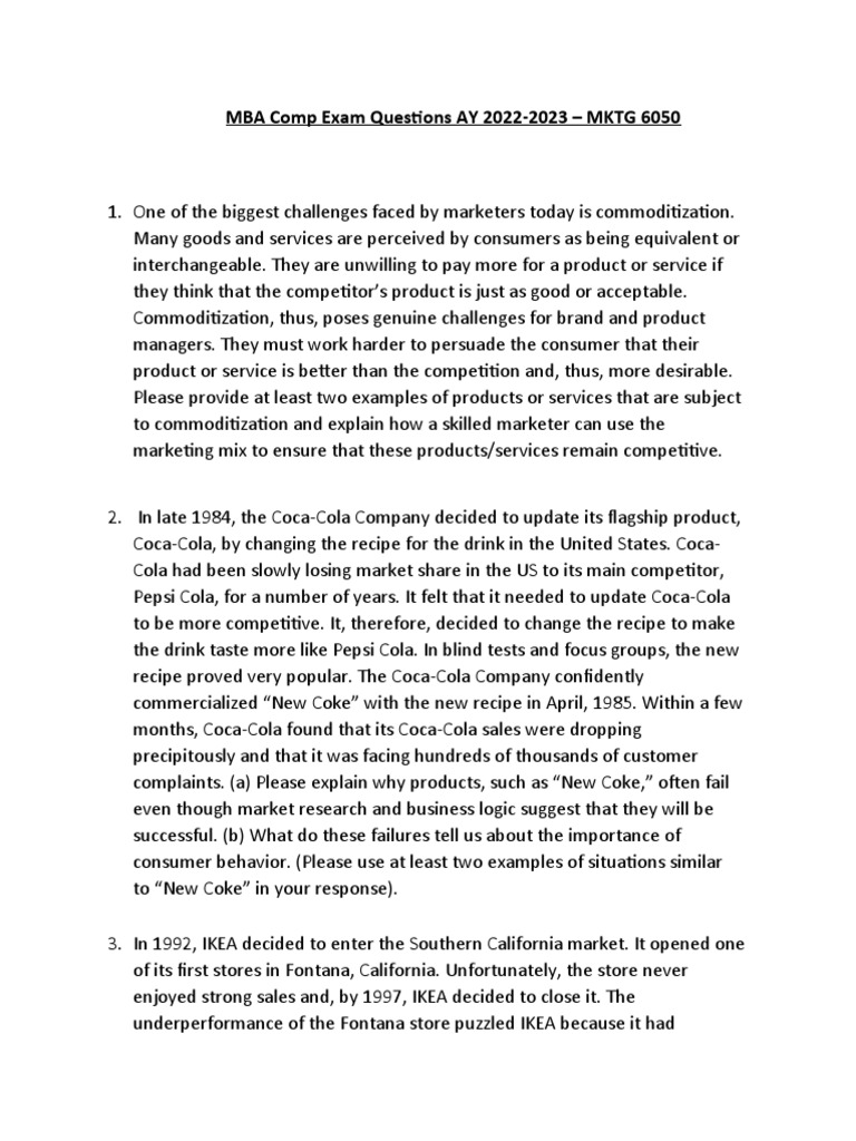 MKTG 6050 Comprehensive Exam Questions AY 20222023 PDF The Coca
