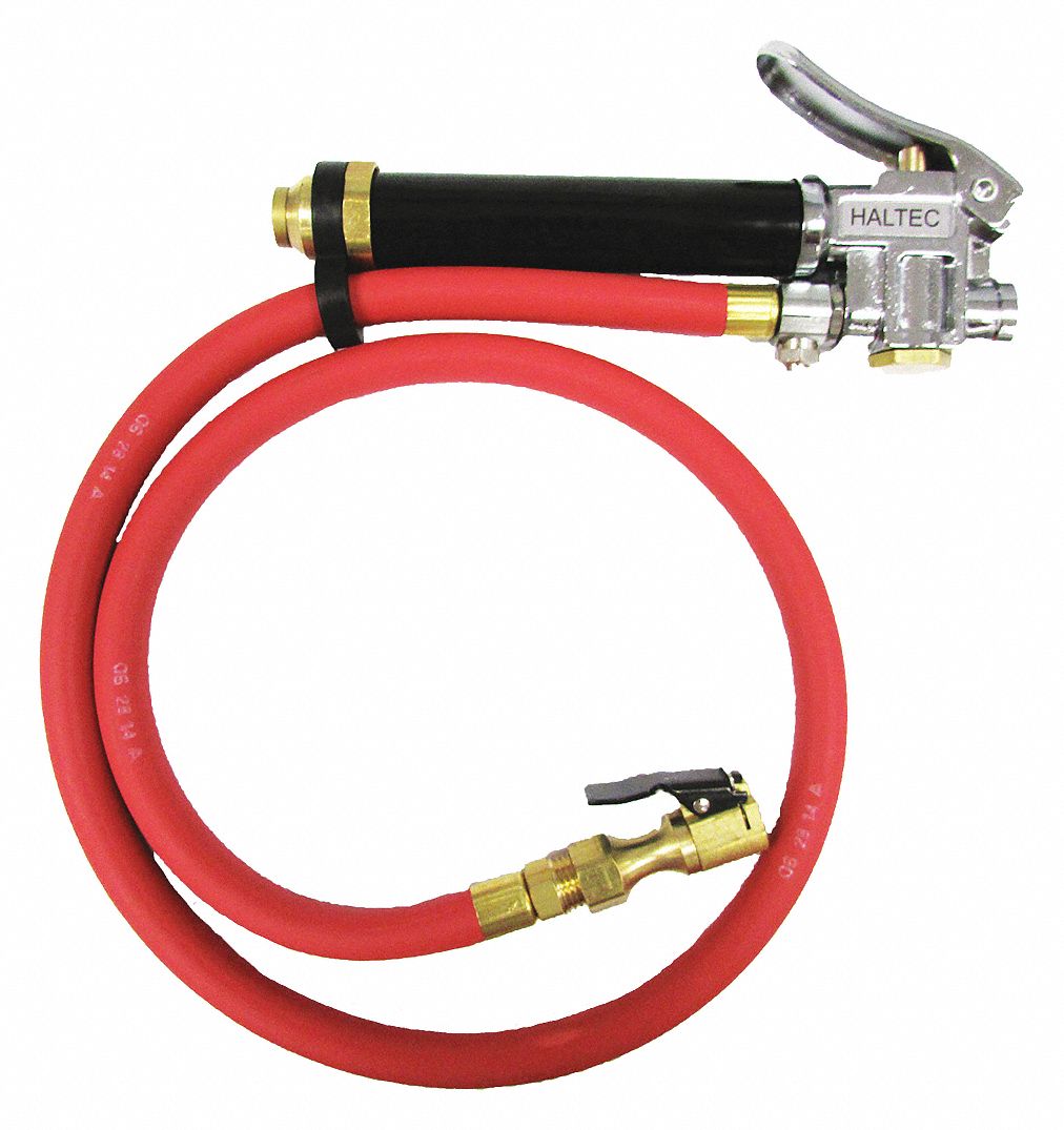 HALTEC Tire Inflator Gauge 10 to 120 psi, Aluminum/Brass, 36 in, 1/4