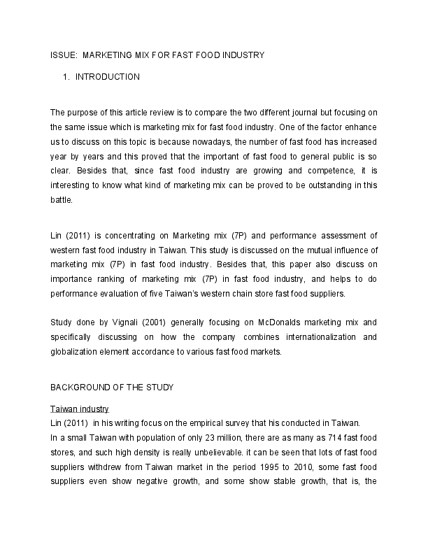 (DOC) ISSUE MARKETING MIX FOR FAST FOOD INDUSTRY rosaliza zakaria
