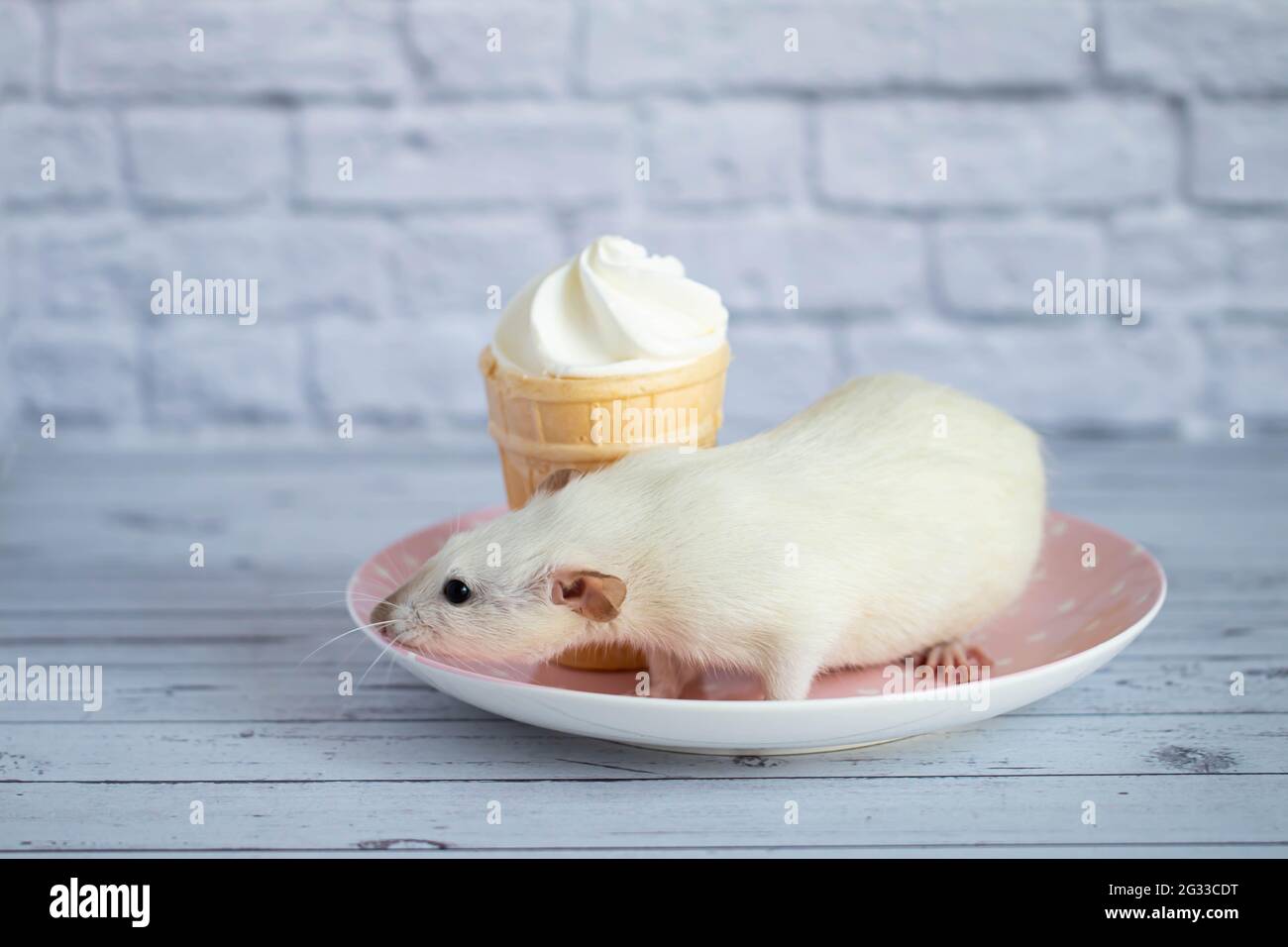 A cute white rat sits next to a waffle cup with white ice cream. The rodent is sniffing the Are Rats Allowed Ice Cream feeding ice cream to rats is not recommended, as it can lead to digestive issues and other health problems. Yes, rats can eat ice cream, but they should not eat it. — in this guide, we will look at which foods to feed with caution and which are best avoided altogether. Even though rats can eat ice cream,. Are Rats Allowed Ice Cream.
