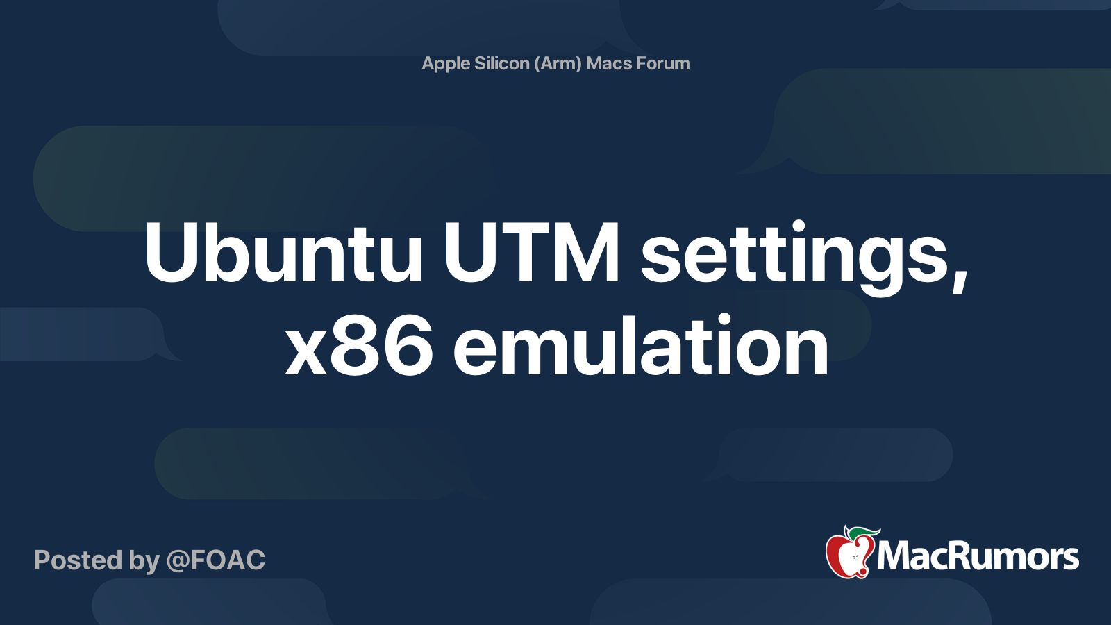 Ubuntu UTM settings, x86 emulation MacRumors Forums