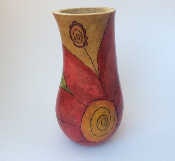 Gourd Vase Handcrafted Original Artist Design red flower