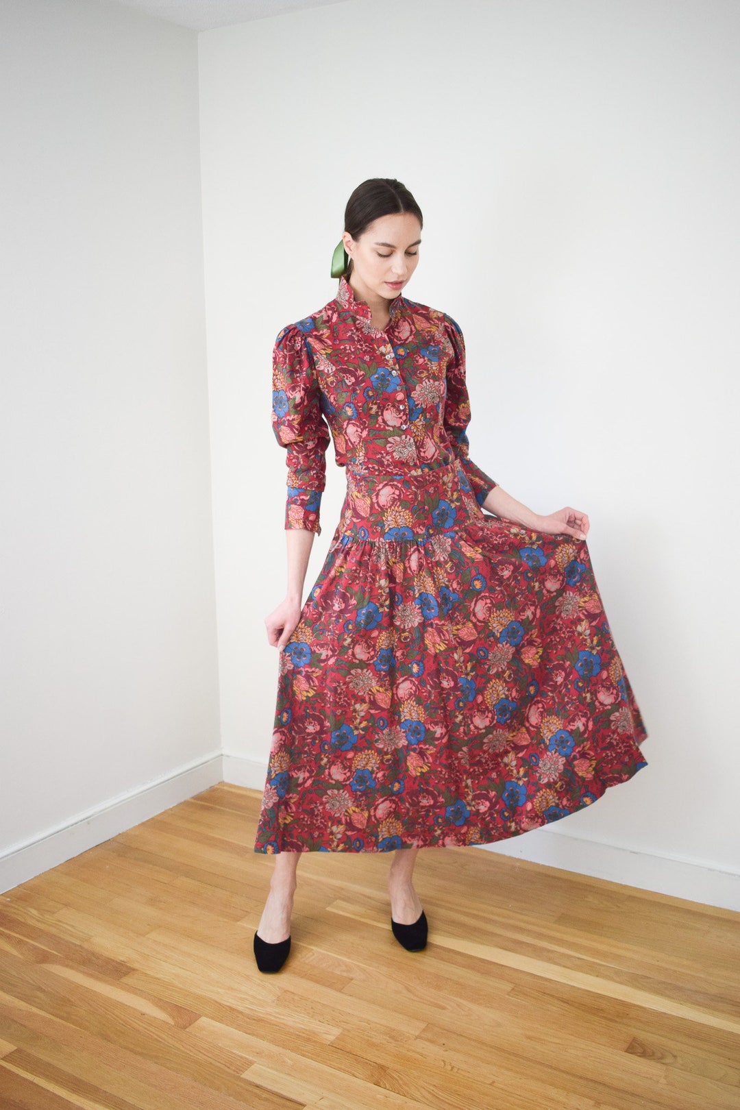 Laura Ashley Floral Print Dress Set S 1970s/1980s Floral Etsy