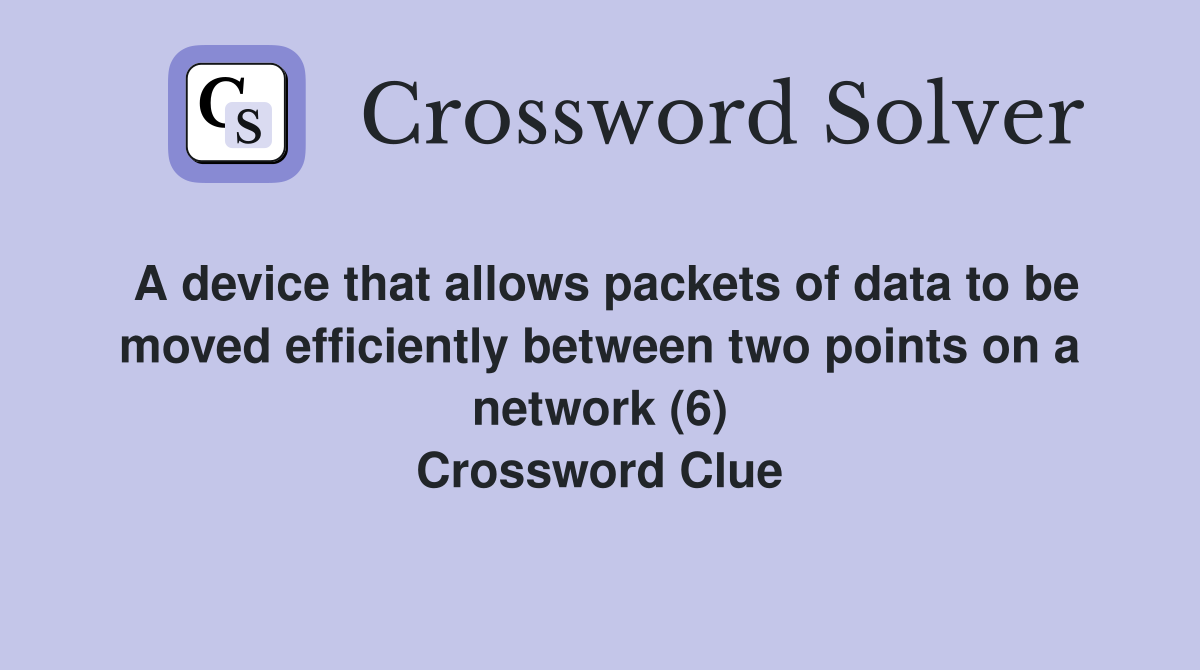 A device that allows packets of data to be moved efficiently between Network Devices For Wifi Crossword Clue All crossword answers with 6 letters for device necessary for wifi network found in daily crossword puzzles: While searching our database we found 1 possible solution for the: The crossword solver finds answers to. You can easily improve your search by specifying the number of letters in the answer. The crossword solver finds answers to. We have found 40 possible. Network Devices For Wifi Crossword Clue.