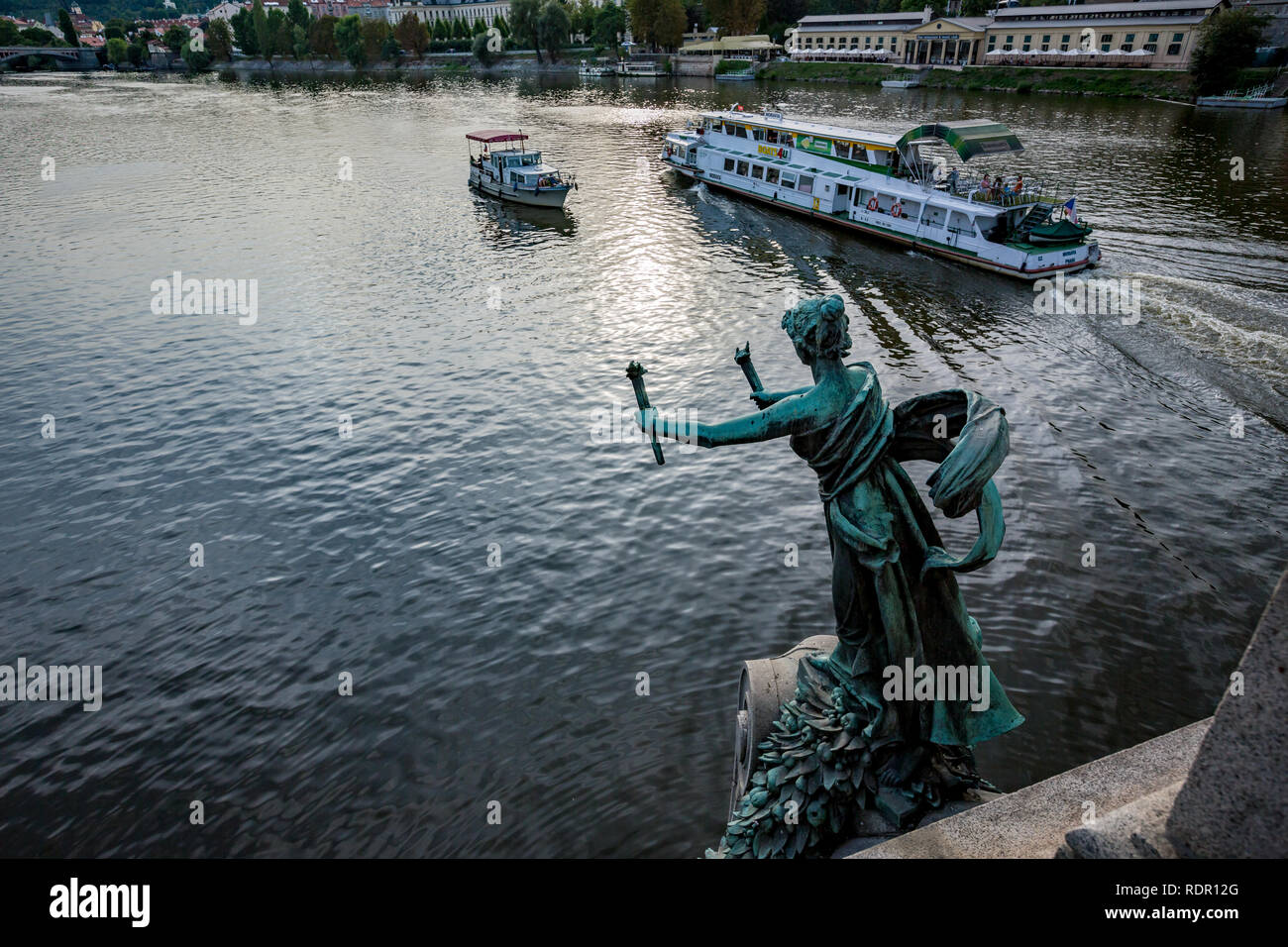 PRAGUE, CZECH REPUBLIC AUGUST 27, 2015 Tour boats sail and pass by Female Statue On Boat The imagery of a woman on the bow of the ship is fairly popular and often the women are depicted with long flowing hair. As for the lady on the front of the ship, there isn’t a single, definitive term for her. Why are they naked, or semi naked? Ships have women (in the form of mermaid figureheads) on their. Female Statue On Boat.