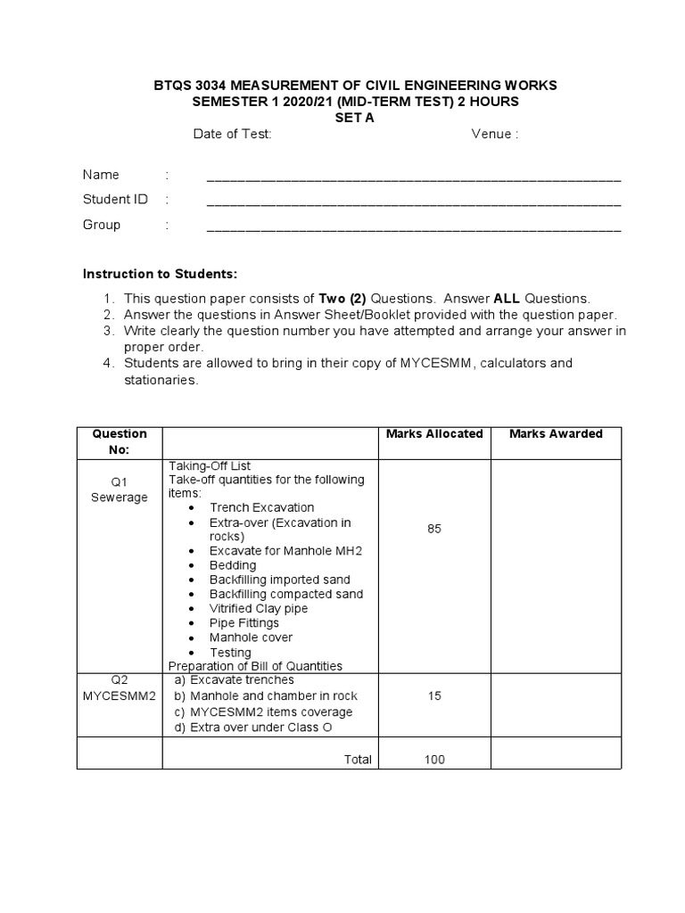 Measurement of Civil Engineering Works MidTerm Test TakingOff