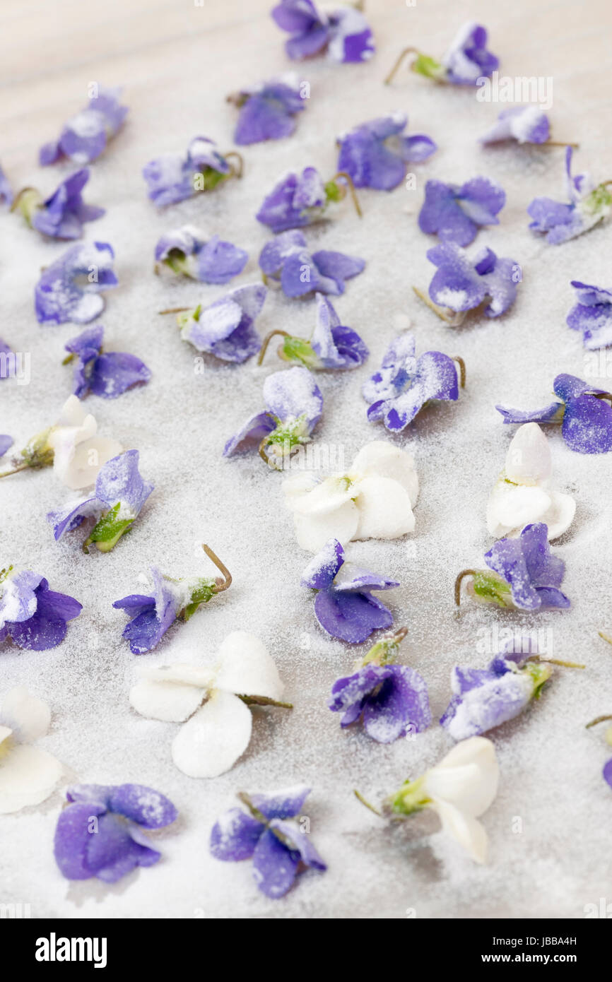 Making candied violet flowers with egg whites and sugar Stock Photo Alamy How To Candied Violet Flowers Last spring i found myself short of sugar sprinkles to decorate a cake but i did have a big bouquet of violets from the garden. Candied violet flowers are an elegant garnish on cakes, custards, ice cream, and other desserts. You only need an egg white and some sugar for this project. Eat them on their own as. Since my. How To Candied Violet Flowers.