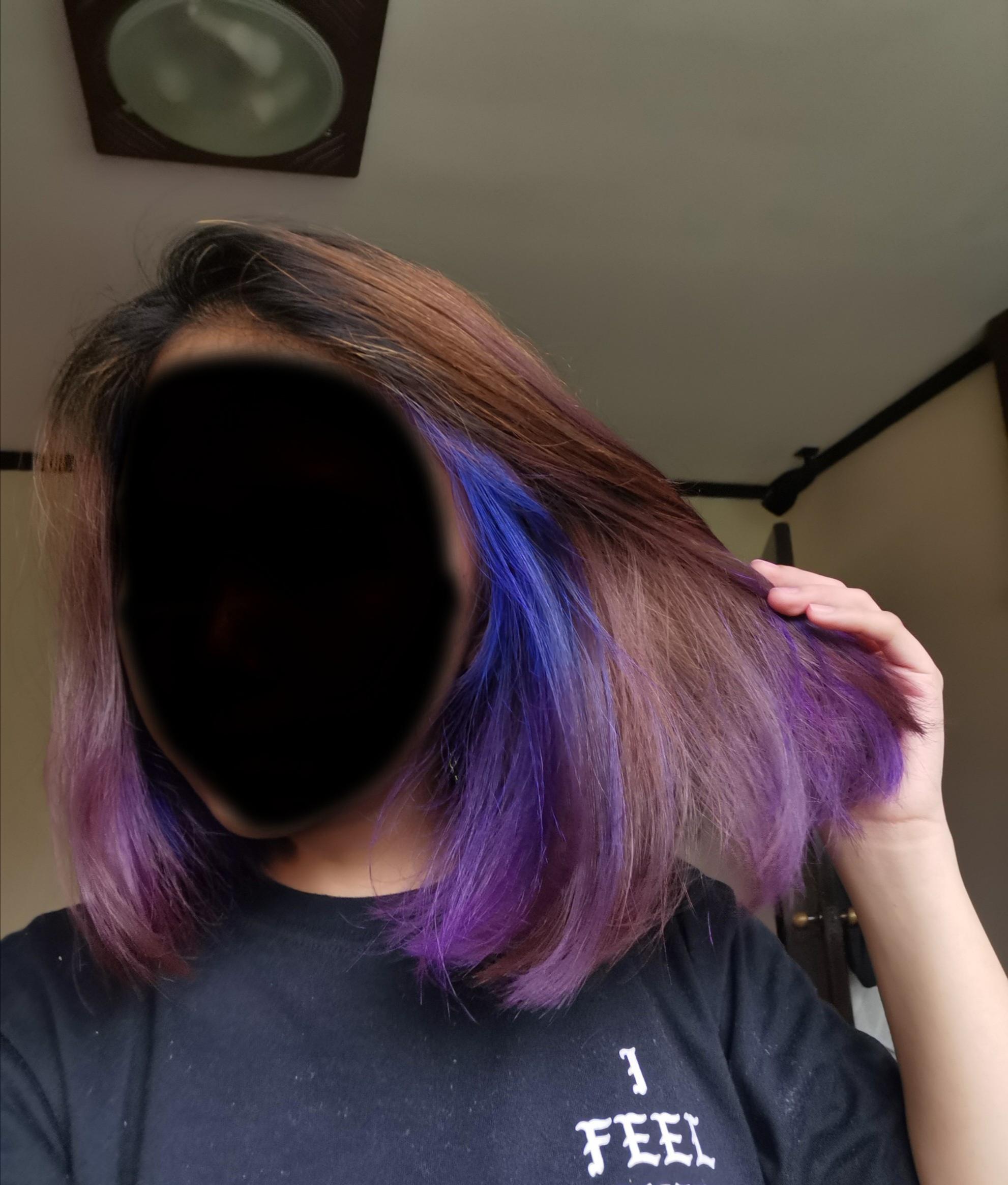 Help!!! Dyed my hair violet today but one part turned darker than the