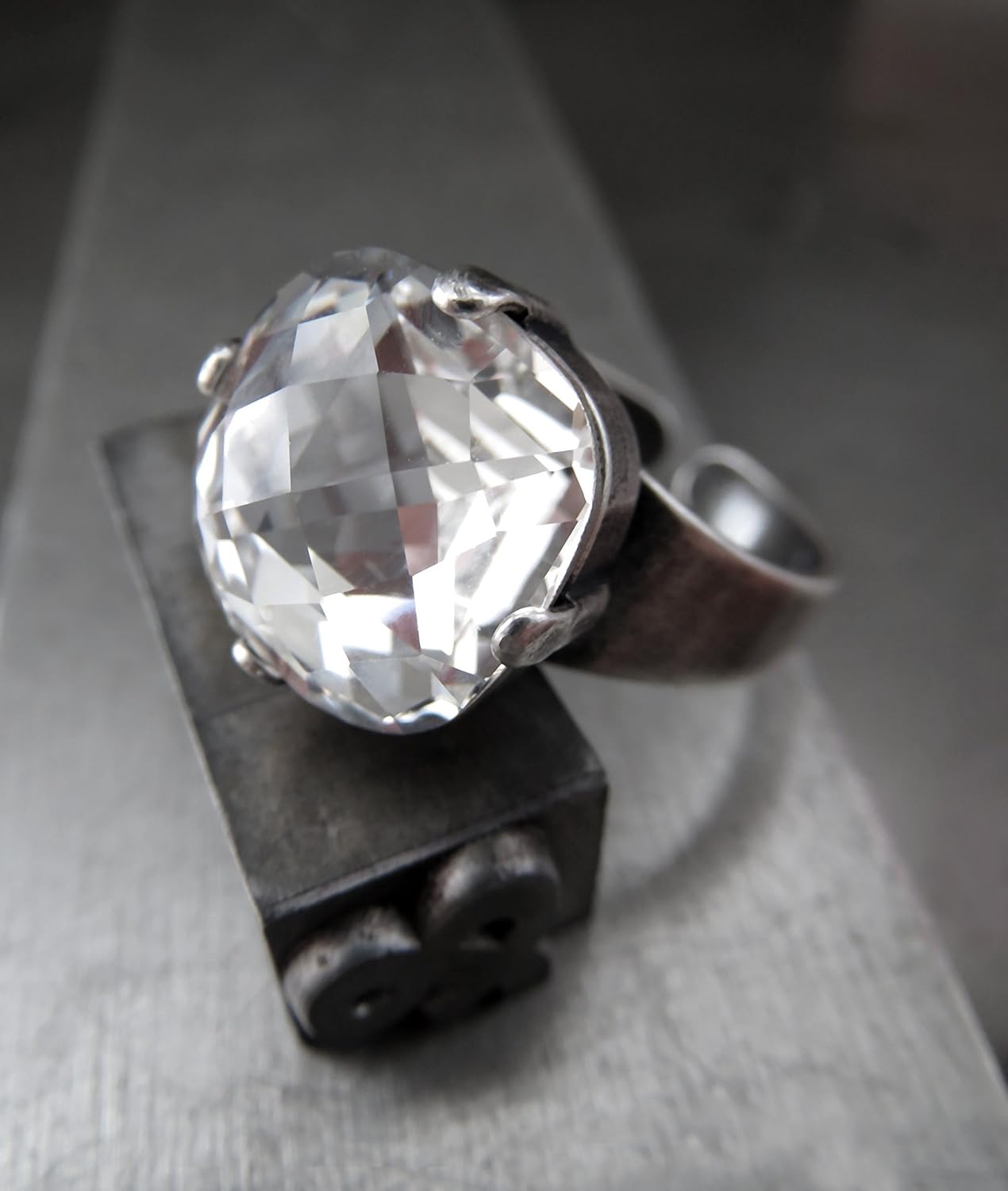 Clear Crystal Ring with Swarovski Crystal, Antique Silver