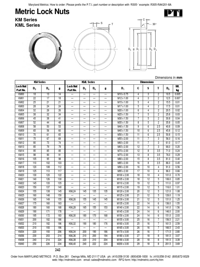 Km Lock Nut Size Chart Km 13 Lock Nut Dimensions D 3 d 4 g d 1 c s t d 6 km00 18 13 14 m10 x 0,75 4 3 2,0 10,5 0,01. Lock nut requiring a keyway (metric) mfr. 1 means metric thread and the digits are major diameter of thread and pitch. Lock nut with metric thread, for locking by lock washer. Image may be a representation.. Km 13 Lock Nut Dimensions.
