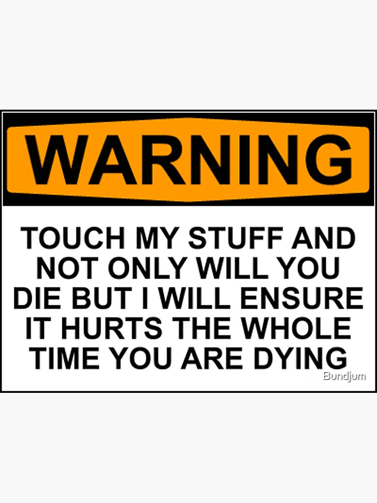 "Warning Touch my stuff and not only will you die but I will ensure