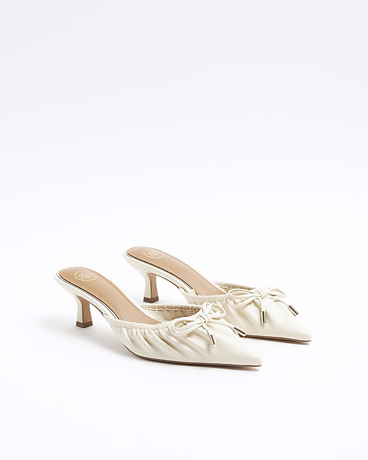 Cream ruched kitten heel court shoes River Island