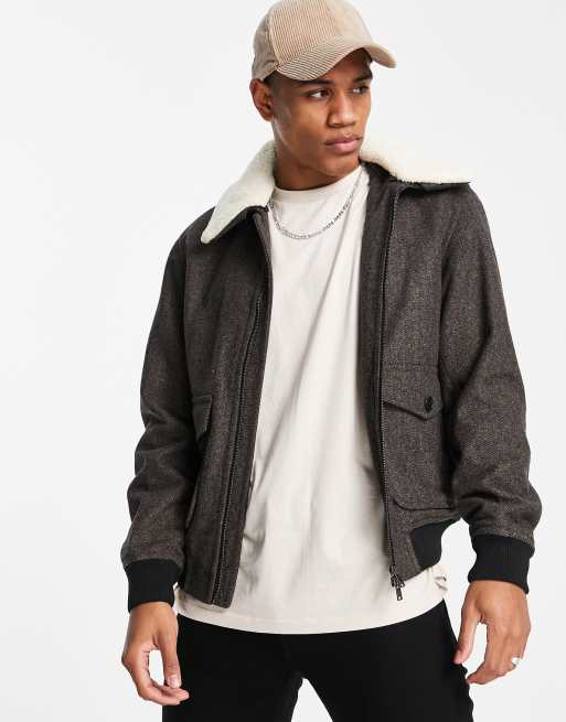 Selected Homme wool aviator jacket in brown ASOS