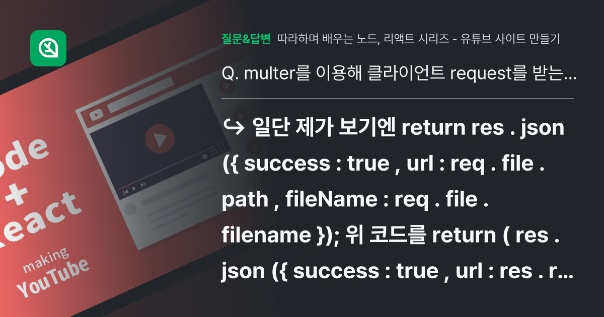 multer를 이용해 클라이언트 request를 받는 것과 express의 router로 request를 받는 것 질문이요! 인프런
