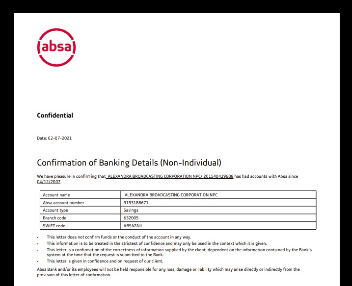 Aldrin Sampear on Twitter "Alex FM was ransacked, equipment worth What Is A Bank Confirmation Letter Absa tap bank confirmation letter select the relevant account; explore the benefits of accessing your financial data from anywhere,. You can also access your bank confirmation letters. Open the absa app on your phone and sign in. the following is how to get a confirmation letter from the absa app; you have successfully downloaded your bank confirmation. What Is A Bank Confirmation Letter Absa.