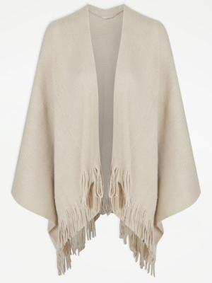 Neutral Fringed Knitted Shawl Women at ASDA
