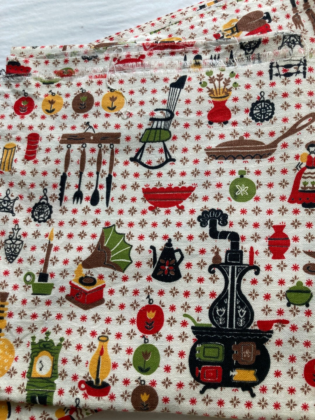 Kitschy Kitchen Fabric Vintage Curtain Fabric Etsy