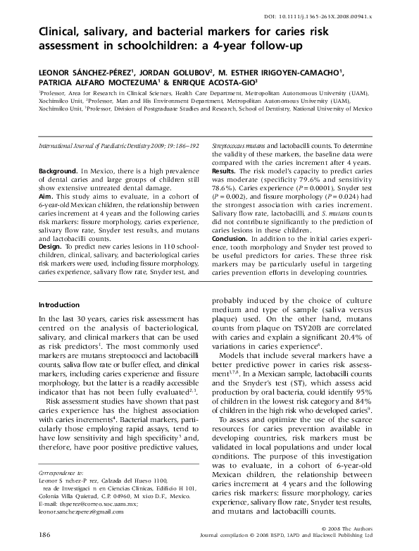 (PDF) Clinical, salivary, and bacterial markers for caries risk