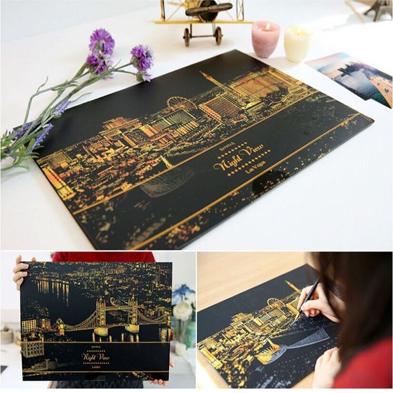 Korea Scratch art card night view DIY art craft Firework Landmarks