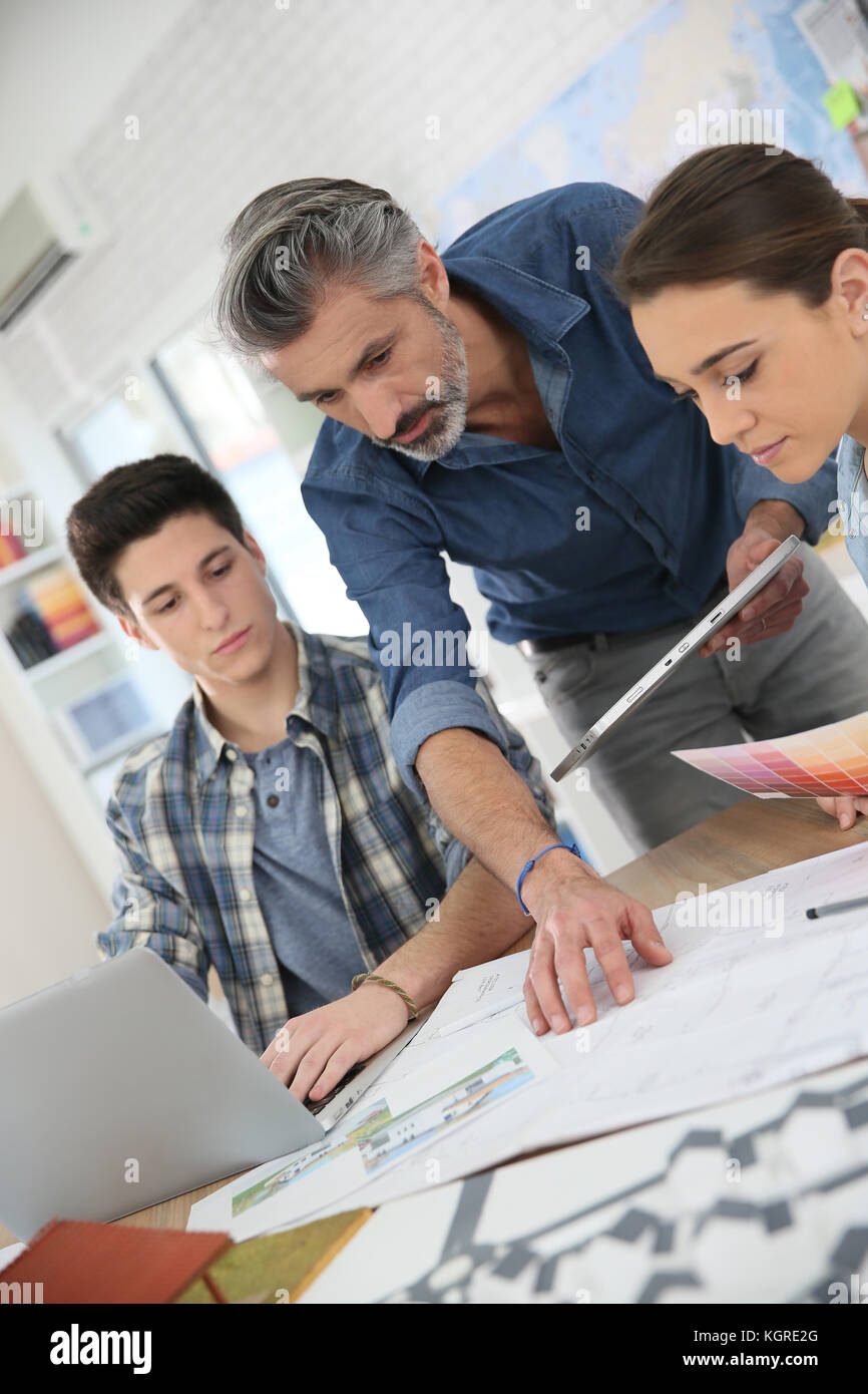 Teacher with students in architecture school Stock Photo Alamy