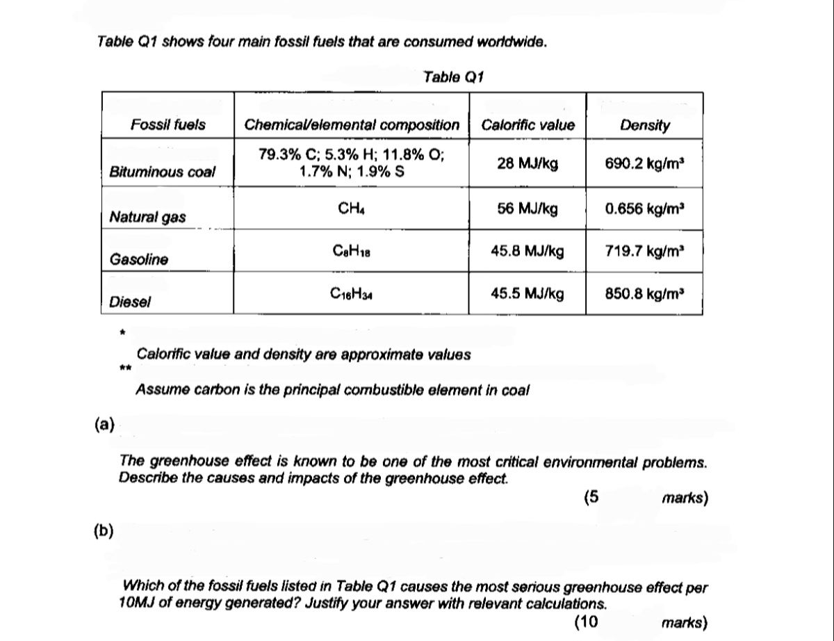 Solved Table Q1 shows four main fossil fuels that are